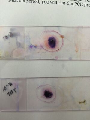 We selected to compare the 10^-3 without and 10^-3 with TET samples for our PCR test. To prepare for the test, we labeled 2 PCR tubes with our transect (group) number and colony identifier (10^-3 with and without). We added 25 μL of primer/water mixture to a labeled PCR tube and flicked/mixed the tube to dissolve the PCR bead at the bottom. Then, with a sterile toothpick, we touched a bit of a bacterial colony from each respective plate we were observing and mixed it in with the primer/water mixture of the PCR tube. Then we capped the tube and placed it in the PCR machine to be used for next lab.