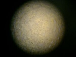 To observe the bacteria from our sample plates, we used a toothpick to pick up a colony of bacteria from 4 plates (10^-3 with tet, 10^-3 without, 10^-5 with tet, 10^-5 without tet) and put them on slides with a drop of water. We placed a cover slip on top and used a compound microscope to take a closer look at the shape and mobility of the bacteria. Below are the images we collected, all at 40x magnification: