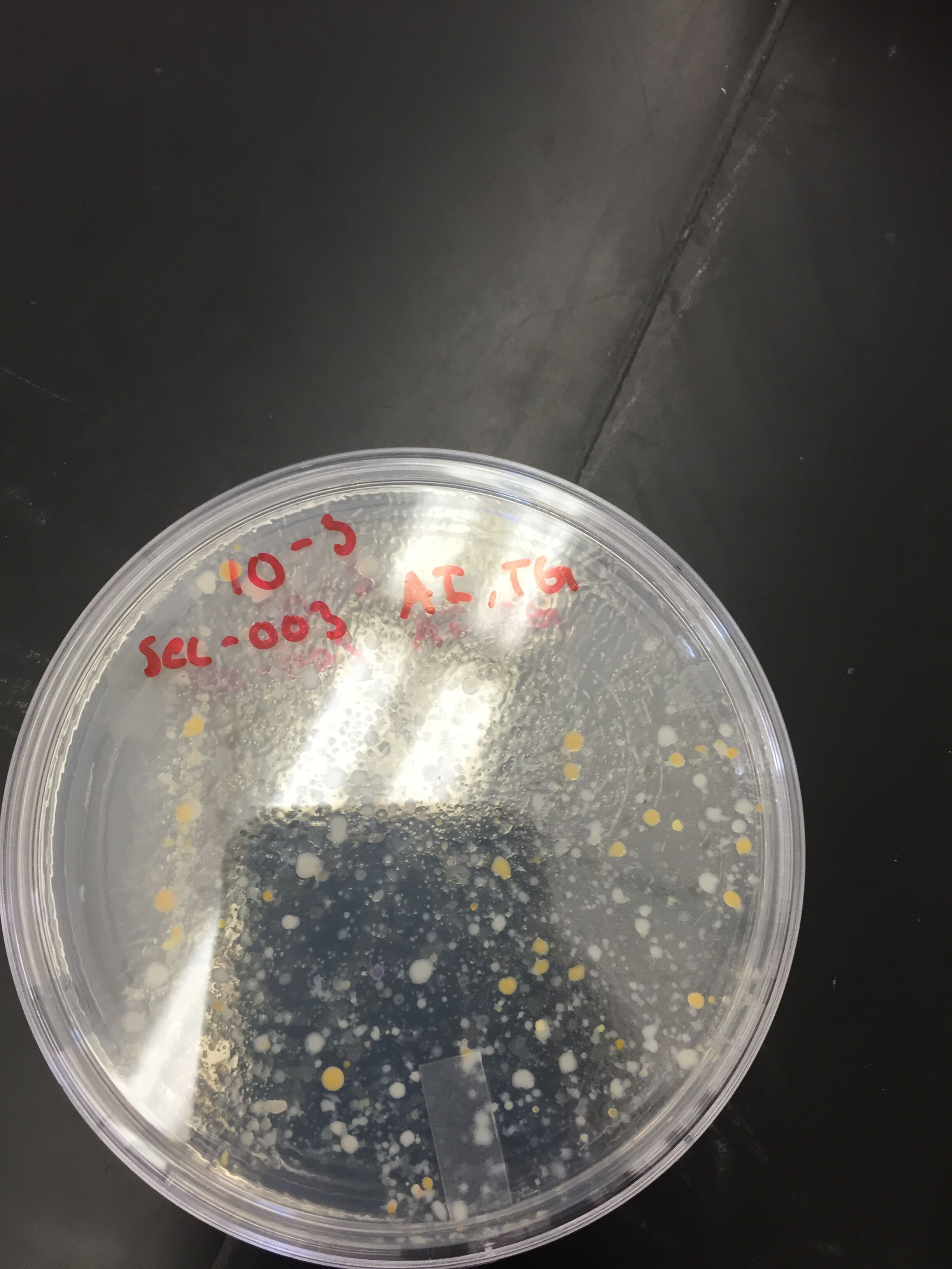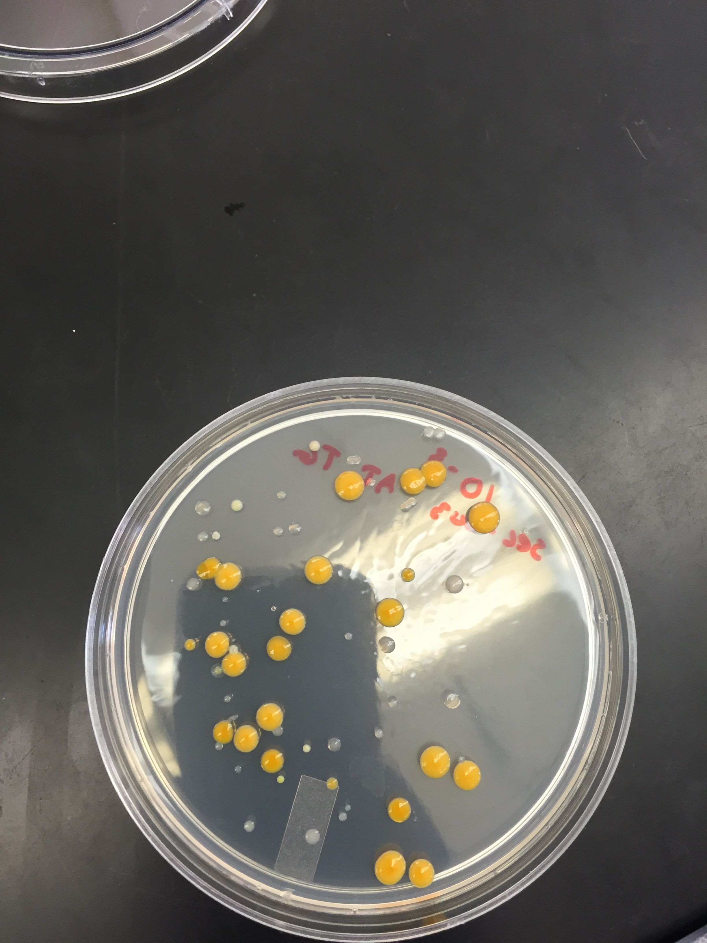 | Dilution | Agar Type | # Colonies on Plate | Conversion Factor | Colonies/ml |