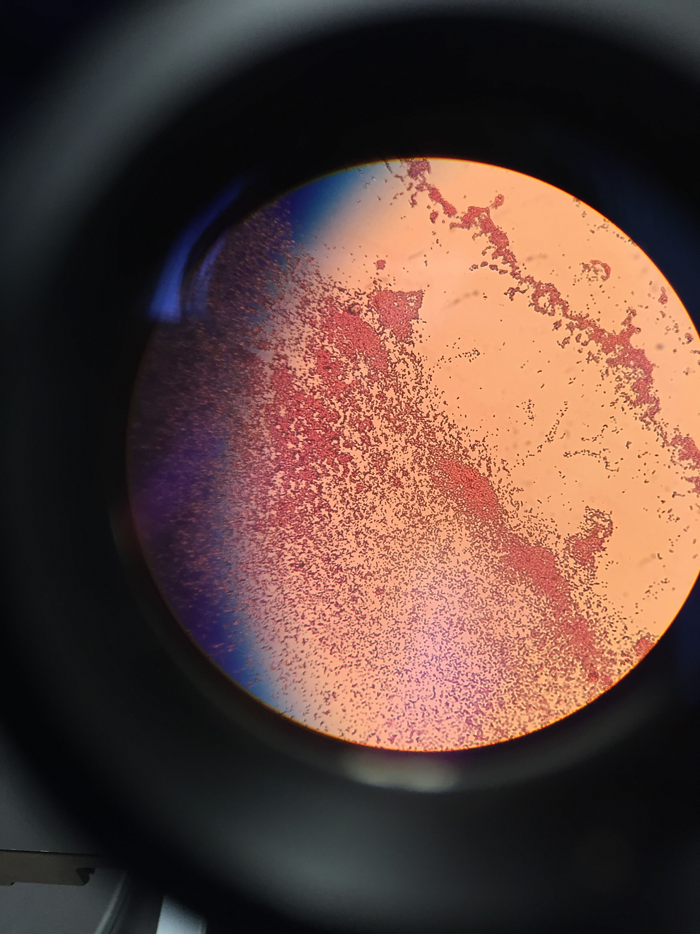 | 10^-5 | Without Tet | White Colonies, mostly round with some undulate colonies, smooth. pulvinate. | Nonmotile, round, coccus, bacillus, light blue. | Negative | |