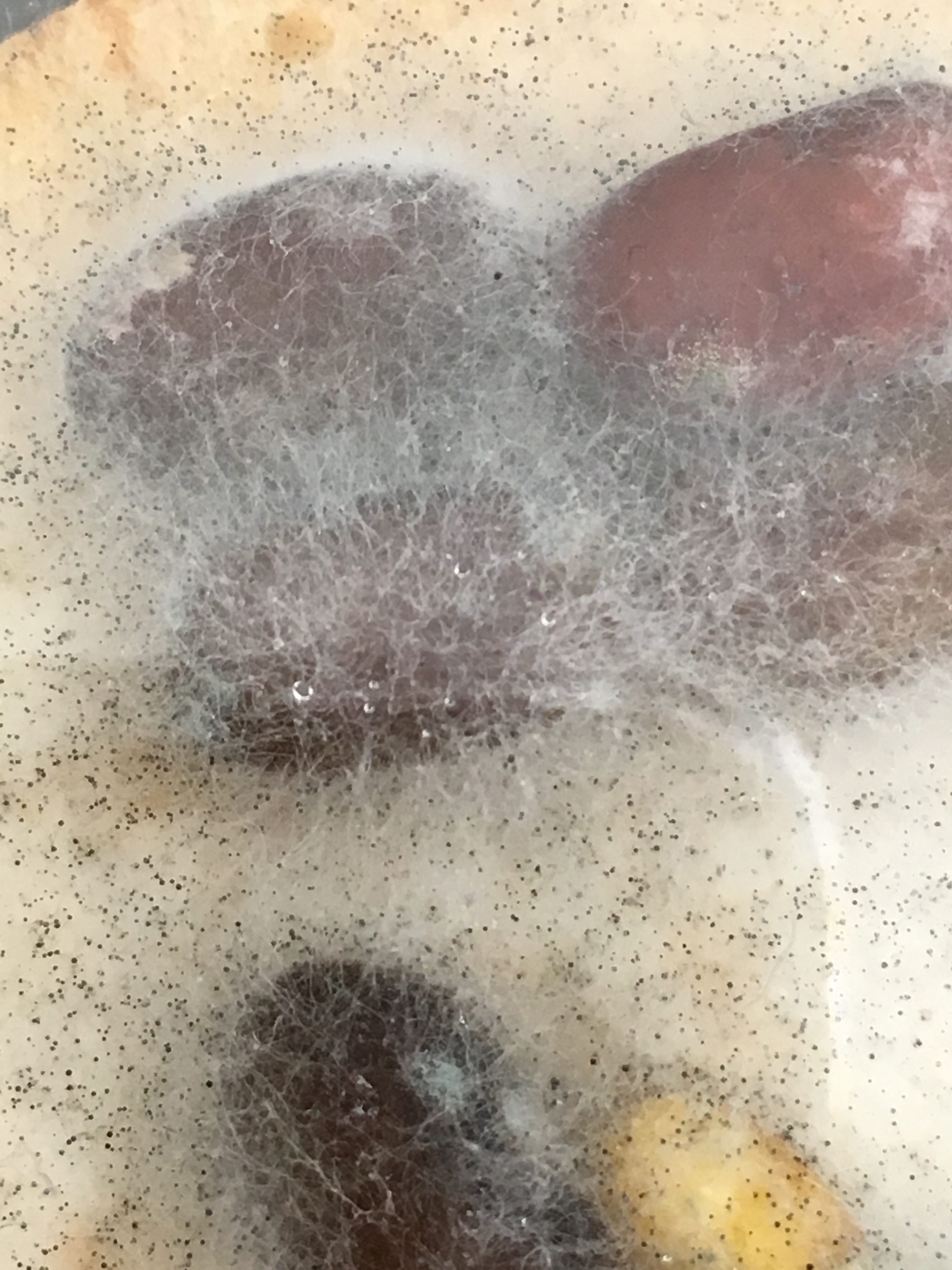 The Fungi sporangia are important in the fungi's survival and the way they reproduce. In the figure above is an example of fungi that reproduce by zygosporangia. The fungus looks almost cotton-like wrapped around the bean. It is white and fuzzy with small black specs, which are the zygospores.