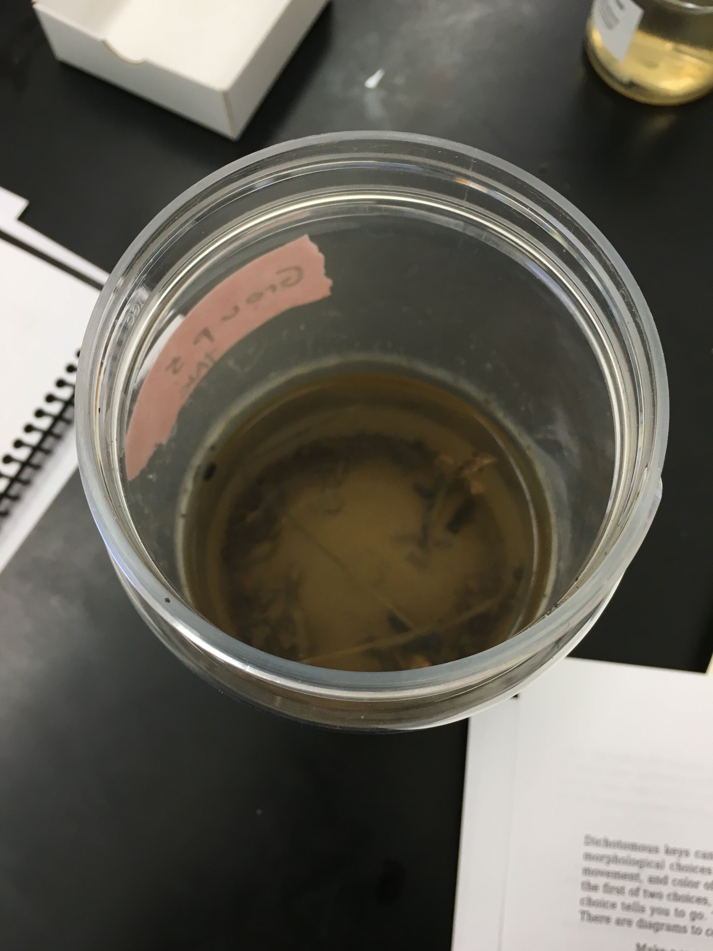 Many of the organisms that were found in the Berlese Funnel were very small. When we looked at our tube, inside appeared to also be an ant, which was one of the bigger organism we saw. However, we didn't add that to our list of organisms we looked at under the microscope. Most of the organisms that we found were part of the Phylum Arthropoda and were very small in size.