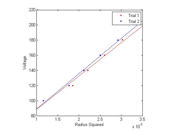 Figure 2: Voltage vs. Radius Squared