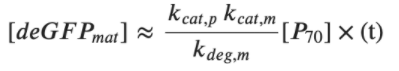 [math]\displaystyle{ \dot{GFP}^* = k_mat \cdot GFP }[/math]