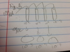 - repeat this with #4 tube on the 10^-5 plate, #6 on the 10^-7, and #8 on the 10^-9