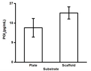 Fig.4 From left to right: prostacyclin secretions of HAECs on scaffolds and tissue culture plates (positive control); Proliferation profiles of HAECs on scaffolds and tissue culture plates (positive control); Death rates of HAECs on scaffolds within 3 days after seeding.