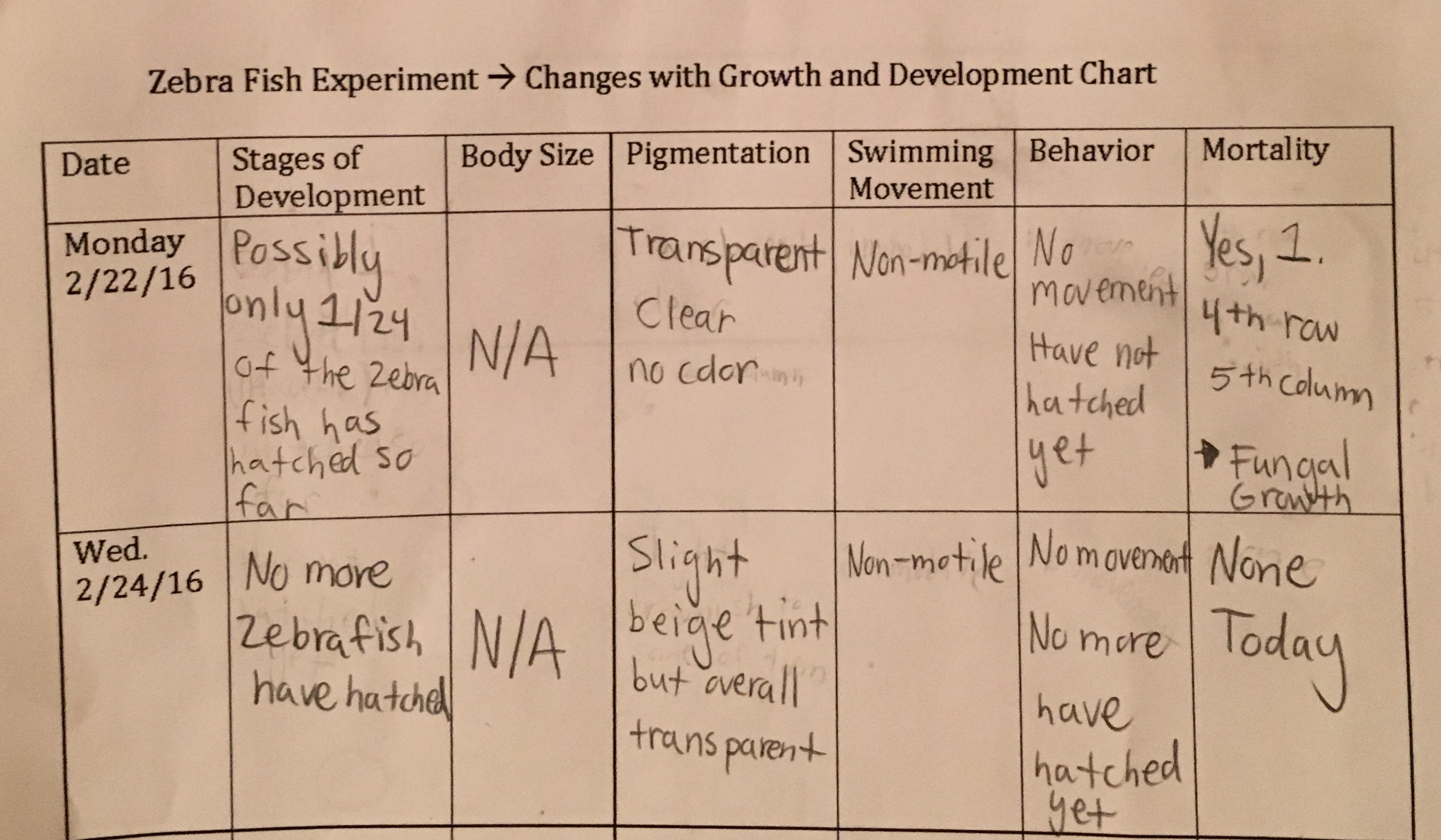 3/18/16 Zebra Fish Experiment - Final Week - Final Observations and Cleanup
