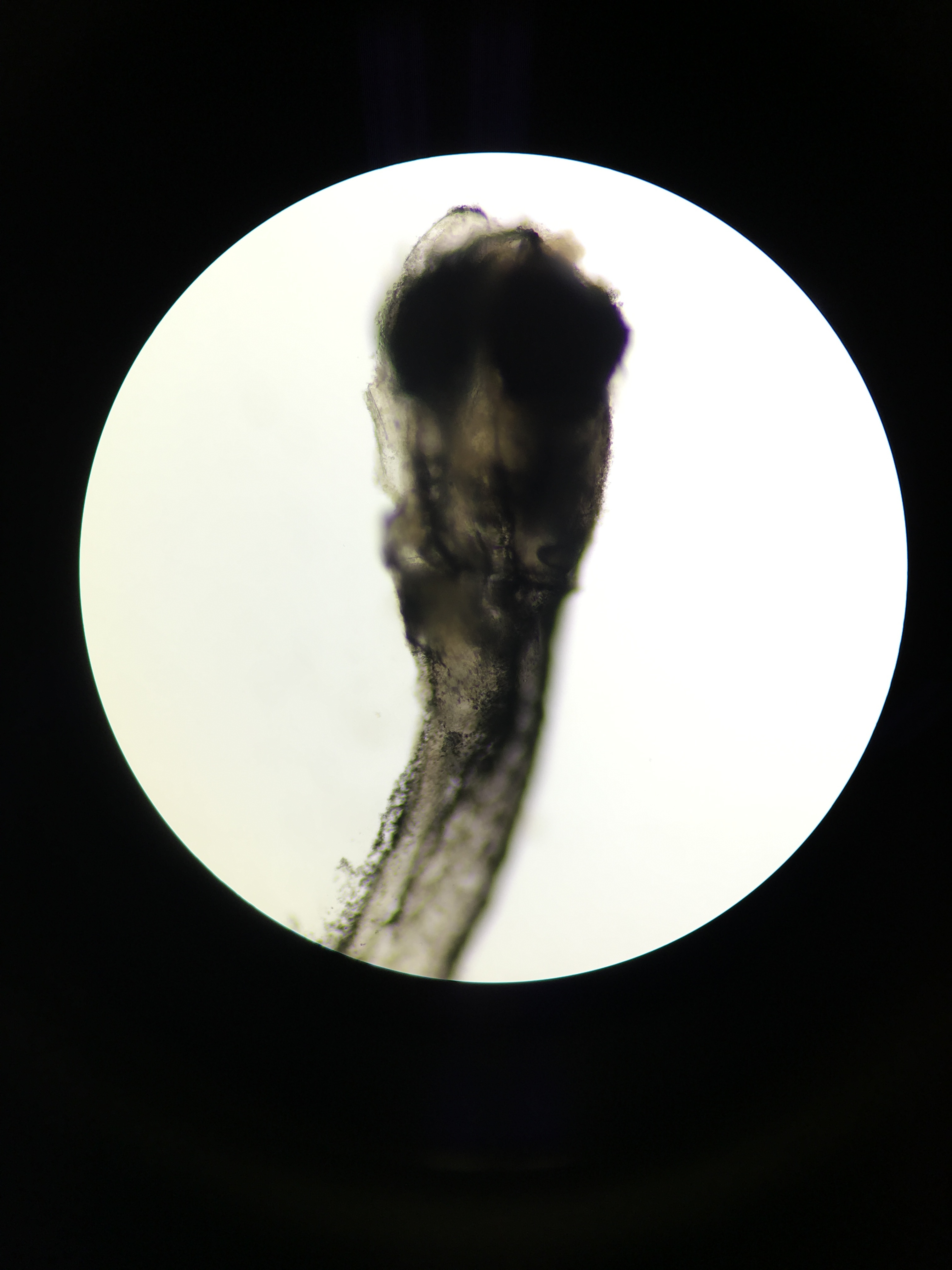 Deceased zebrafish 11 days post fertilization; 4x magnification