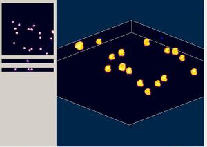 A square area in the upper right (x-y plane) was photobleached by accident.