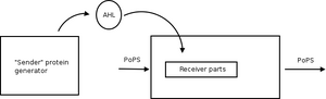 Recall that for an example of a genetic device, we spent a bunch of time making genetically encoded inverters, where one protein controls the operator of another protein. (see figure)