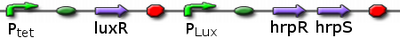 [[image:ICGEMS_sys_Ptet_luxR_Plux_hrpR-hrpS.png|left|thumb|400px|Ptet promoting LuxR, Plux promoting HrpR and HrpS]]