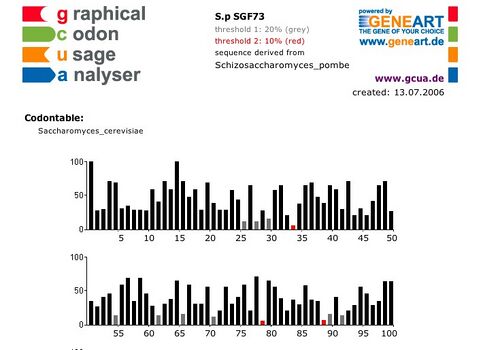 Codon Usage Comparison using GeneArt tool called Graphical Codon Usage Analyzer [4]