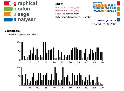 codon usage SGF73 S. pombe vs S. cerevisiae