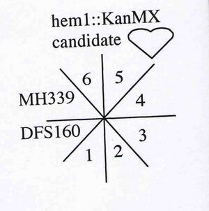 Geneology note: yMH36 hem1D::KanMX #1 03/14/06