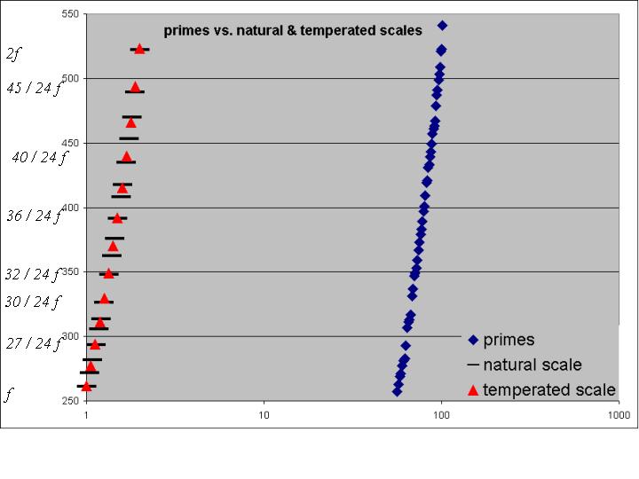 First period (elements 1 and 2) defines the even-odd concepts, equivalent in signal transmition, to renormalized [-1, 0, 1], or in musical terms to semitone and tone. Second period (8 elements, primes from 3 to 23: increment=20) defines -consolidates- the primity concept and is equivalent, for instance, to 2 musical scales, or to binary Golay code G23. Third period (8 elements, primes from 29 to 59: increment=30) determines the self-organizing character of the progression of the prime numbers: 29 is (almost 30) a "prime multiple" of 3.