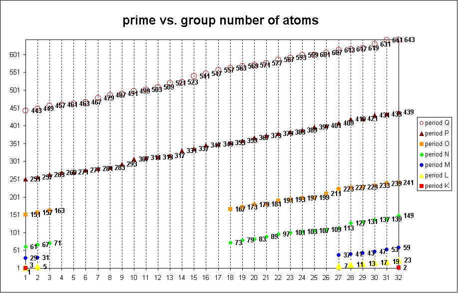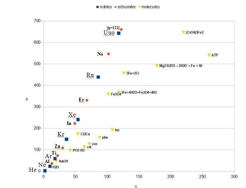 | Atomic periodicity (n protons of noble gases): |