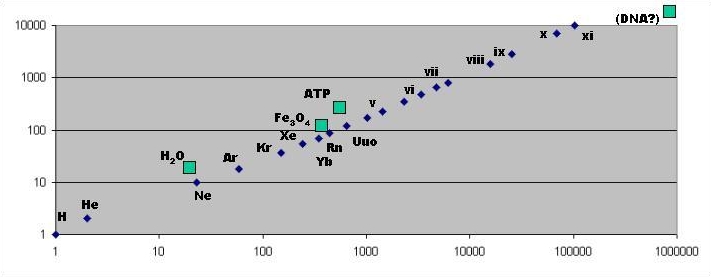 b.- Simple arithmetical rules are used for different molecules (from water to ATP; resp., p=19 and p=541). My initial question was if hydrogen and ATP could be compared "quantitatively" at entropy and information levels; within "primity scale", H and ATP information values differe in a "logarithmic order 1:101".