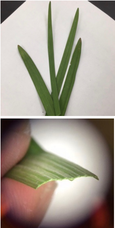 Thick, waxy, shrub-like grass, grows in very moist soil on creekbank near the water. Thick and spongy, longitudinally vascular along the length of the blade. Height is around 4 inches and the tentative identification is a species of Luzula, Wood rush.