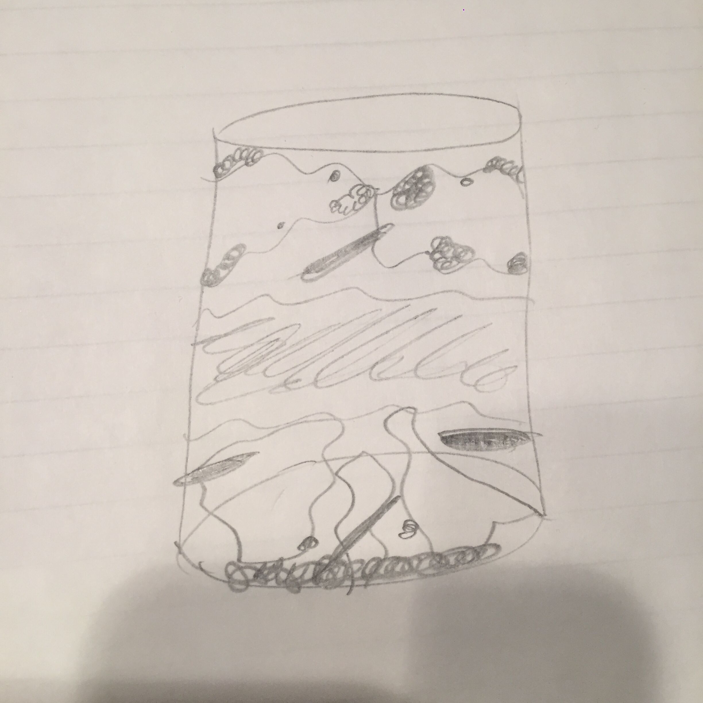 Our culture is more settled, the plant matter that was originally green is now brown and decomposed. The level of culture decreased by almost half, and the leaves and stick are significantly smaller. There is still a strong smell, and the top of the culture is now covered with a firm white film. The middle of the culture is still clear and the bottom is dark brown. I hypothesize that the appearance of the culture changed because the hay infusion is a micro ecosystem, and is moving towards equilibrium from the point that it was originally put together.