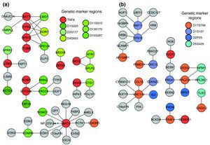 Type I Diabetes: From the interacting chromosomal regions explored by Bergholdt et. al, the WDR1, LMO7, HNRPLL and RPS15A genes are potential T1D candidate genes. These genes are involved in transcriptional regulation, DNA binding, RNA binding, ion channel activity, ATP synthesis, actin binding and natural killer cell mediated cytotoxicity and cell proliferation. Other networks with TNFA (a gene proposed to be essential to the onset of T1D because of its locus near HLA) include genes involved in signal transduction, regulation of transcription, protein biosynthesis and folding, histone activity, ubiquitin-protein ligase activity, as well as response to oxidative stress, also of potential relevance in T1D pathogenesis.