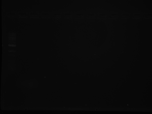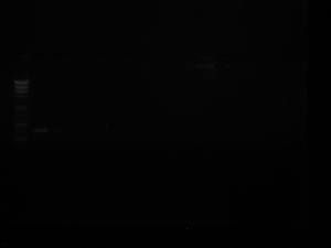 We ran the gel with our PCR product (5-3B) and got a band between 500- 800 base pairs, which is exactly where we wanted it to be.