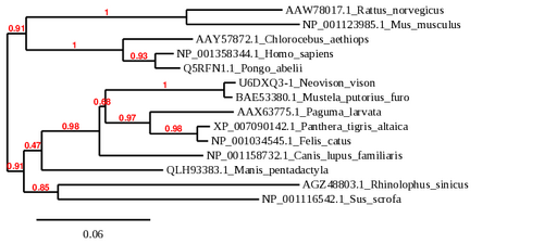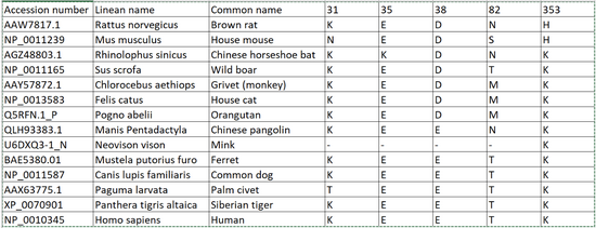 - We will use the UniProt database and possibly GenBank for obtaining sequences. We will remain within the mammals category and possibly look at the sequences for ACE2 of Humans, Bats, Civet Cats, Squirrels, Rats, Birds, Dogs, Cats, Lions, Tigers, Ferrets, and Minks.