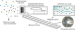 This study presented a first demonstration that a high volume portable sampler, i.e., the RCS High Flow, can be adapted for use in PCR-based molecular detection through use of the mineral-oil-strips. The developed technique not only could yield higher culturable bioaerosol concentrations in practical environments, but also provide bioaerosol samples for rapid qPCR analysis without the filter sample extraction steps.