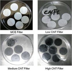 The results here demonstrated great promise of the SWNT hybrid filter in controlling biological aerosols, and suggested its potential to impact current air conditioning system. This study demonstrated a novel bioaerosol removal technique, and further tests with other airborne biological materials could lead to improved medical masks and indoor air pollution control technologies. (Xu and Yao, 2011, JAS; Guan and Yao, JAS, 2010).