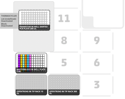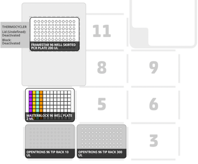 - Position of labware and the thermocycler module on the OT-2 deck.